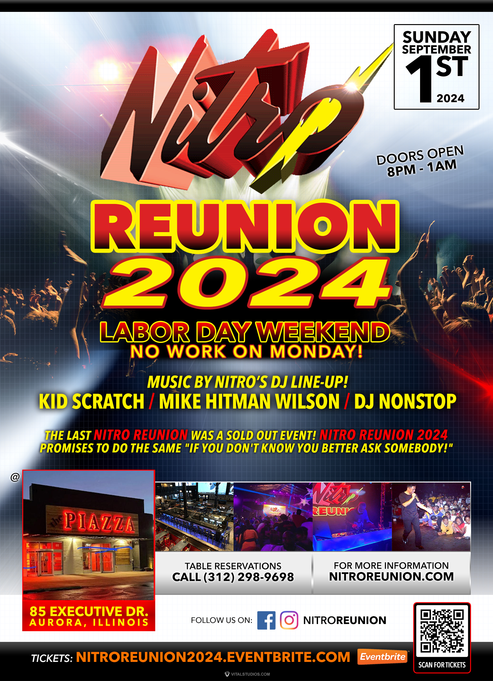 “Music Is The Soundtrack Of Our Life” So the music being played at the reunion will be from the Nitro years and will be played by all original Nitro DJs. So if your expecting to hear mumble rap you’ll be disappointed. If the crowd is willing we will revitalize the Famous Booty Contest. So you guys might want to hit the gym.